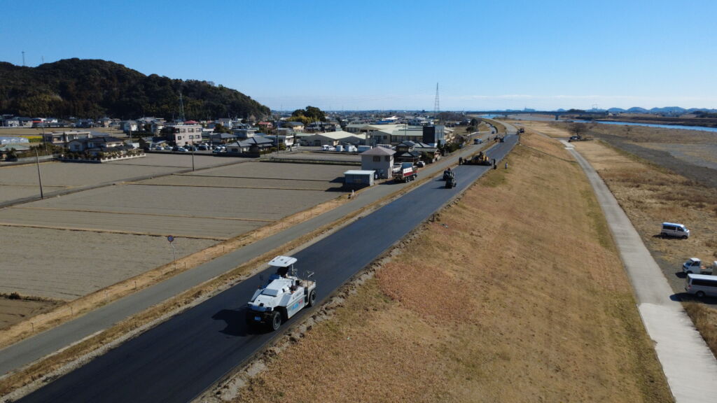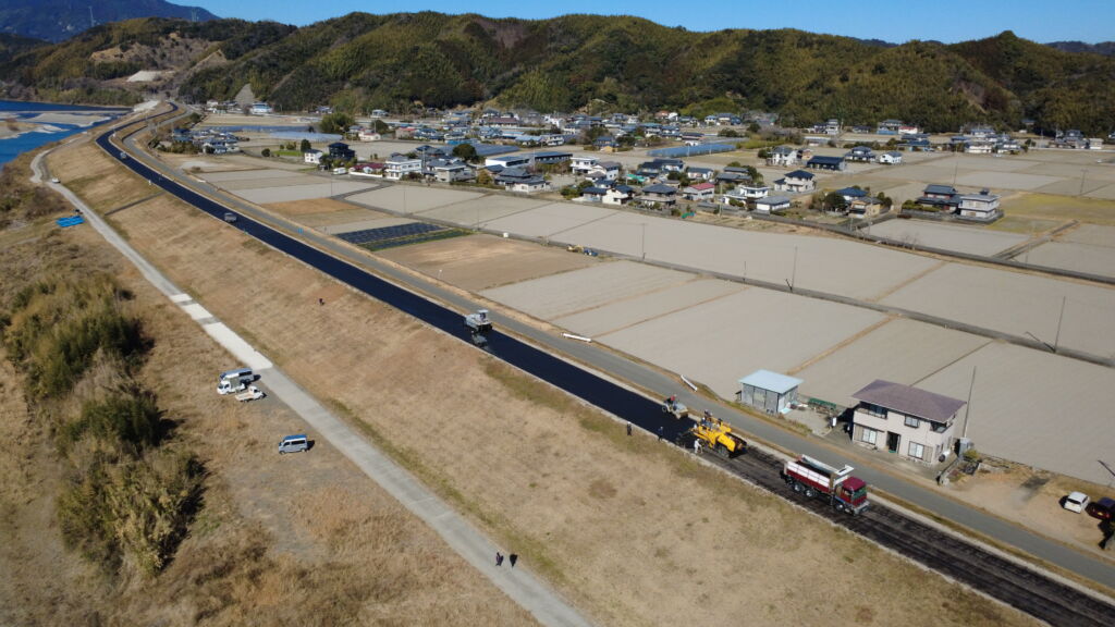 堤防のアスファルト舗装が完成しました。